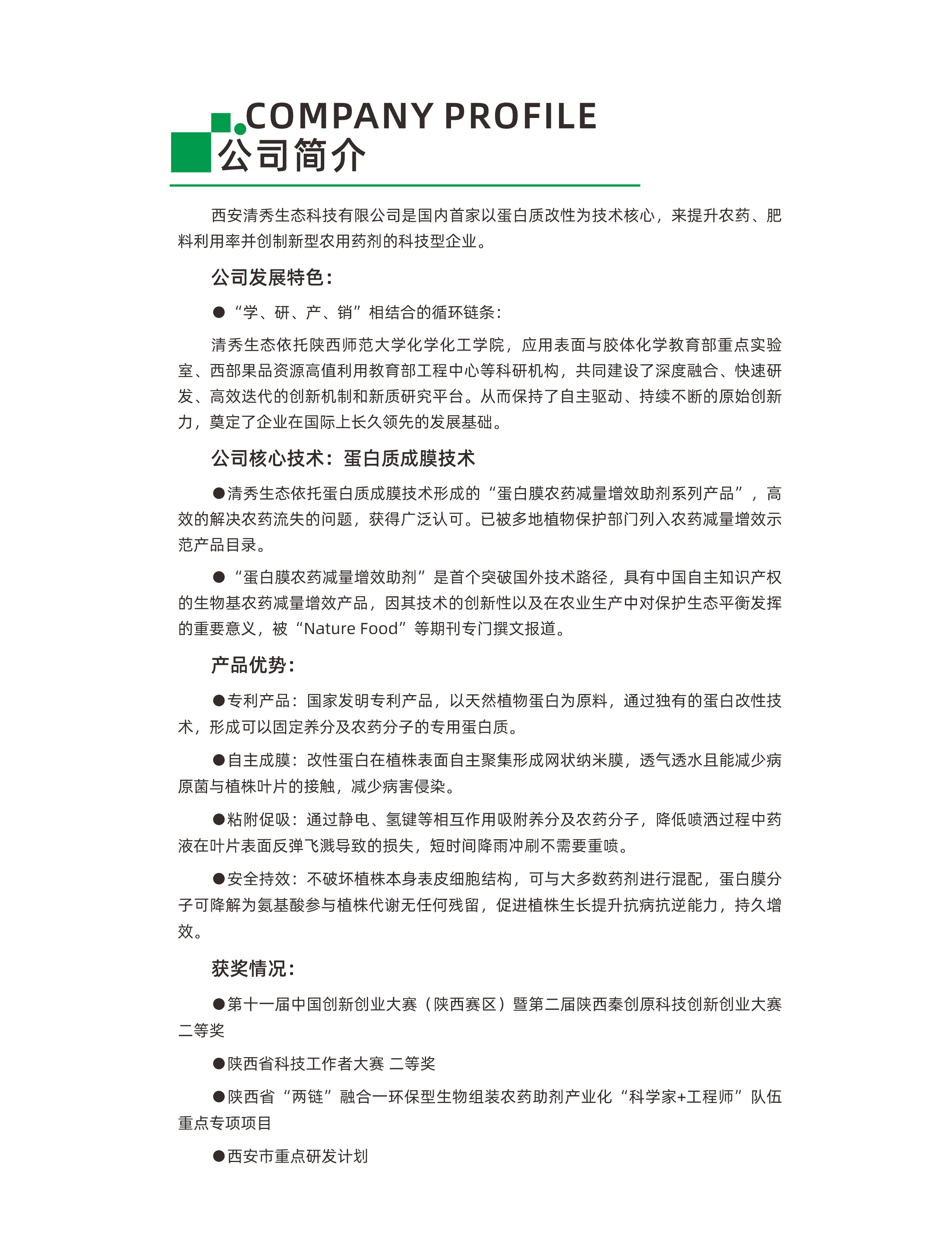清秀生态生物组装农药减量增效新体系,用蛋白解决农药过量使用和生物农药性价比低等世界难题,属国际首次,拥有良好前景及技术优势。